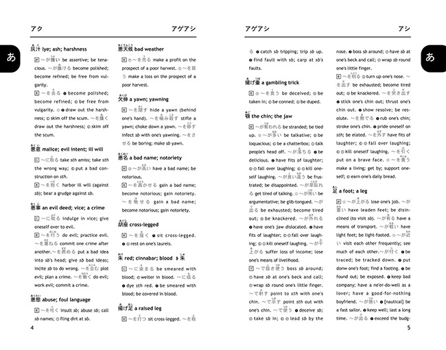 It presents more than 10000 idiomatic phrases under 1000 main entries, including several thousands of idioms never presented and explained in English before. Multiple sample sentences are given for each entry, and furigana allows even beginning students to pronounce correctly and to use the expressions immediately. A thumb index, duo-tone printing, and newly added full English index make entries exceptionally easy to access.