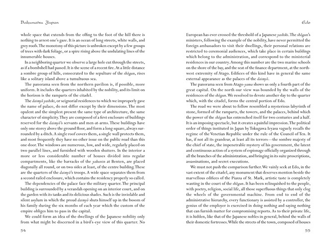 Though he was to spend less than a year in Japan, Humber’s informed impressions are, in hindsight, of great historical value. Unlike his few predecessors (who were required to stick to the same route to visit Edo and pay homage to the shôgun), Humbert was one of the first foreigners to freely travel around the country with his entourage and record his observations. More importantly, unlike his many successors, Humbert did so just before the fall of the shogunate—during the twilight years of the Bakufu, or bakumatsu in Japanese.