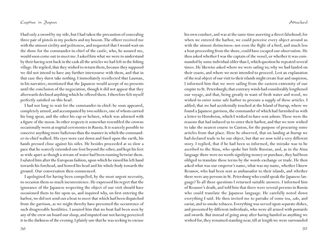 Golovnin's account of his adventures in Japan was an overnight bestseller among the Russian reading public. Even today, his account, unblemished by the prejudices of so many of the later Western visitors to feudal Japan, still makes for riveting reading.