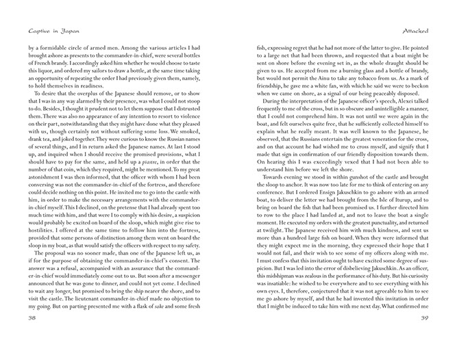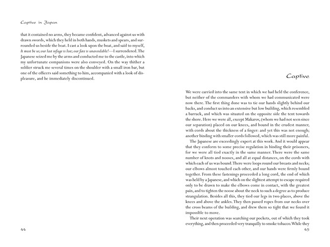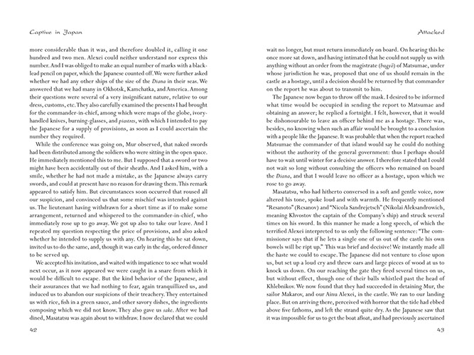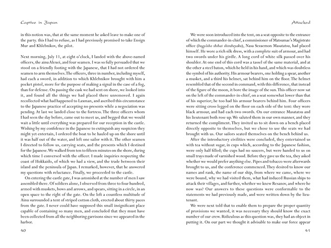 The highly educated Golovnin now decided on a remarkably different approach and used his next two years in captivity to master the Japanese language and to learn all he could about the Japanese and their customs. The result is a mesmerizing account that is a testament to his and his men's bravery, as well as his respect for the Japanese and their culture.