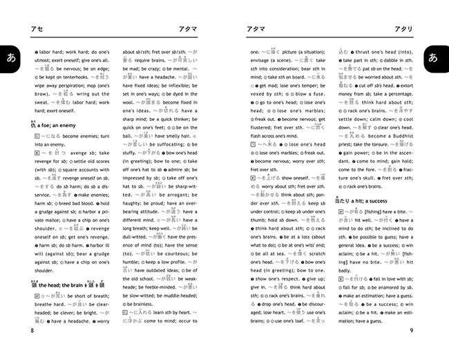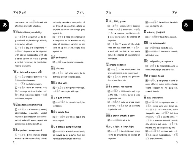It presents more than 10000 idiomatic phrases under 1000 main entries, including several thousands of idioms never presented and explained in English before. Multiple sample sentences are given for each entry, and furigana allows even beginning students to pronounce correctly and to use the expressions immediately. A thumb index, duo-tone printing, and newly added full English index make entries exceptionally easy to access.